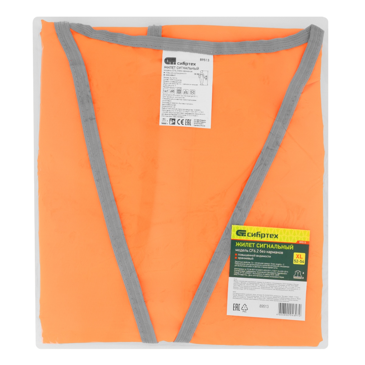 Жилет сигнальный, оранжевый, размер XL Сибртех