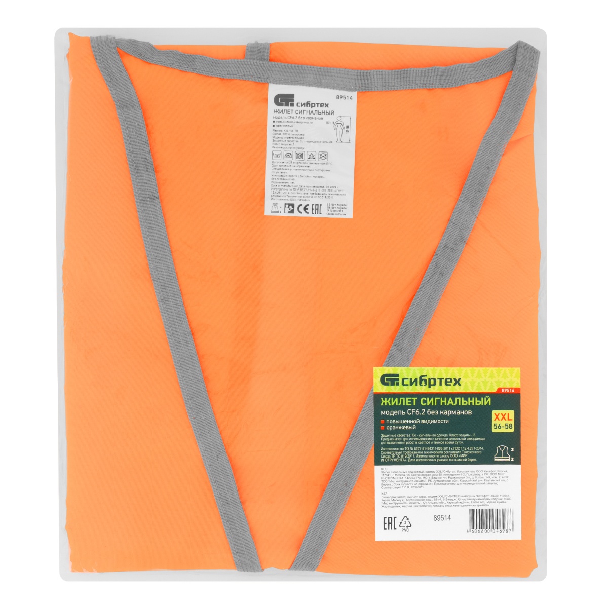 Купить Жилет сигнальный, оранжевый, размер XXL Сибртех V1796 по лучшей цене с доставкой - интернет магазин №1 в России