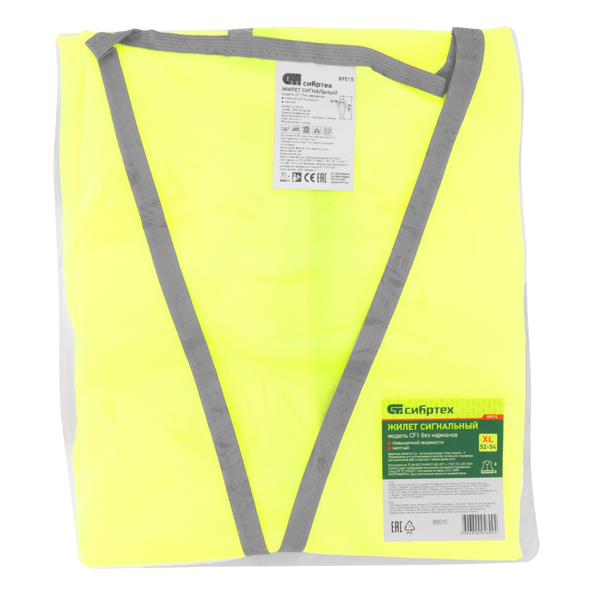 Купить Жилет сигнальный, желтый, размер XL Сибртех V1793 по лучшей цене с доставкой - интернет магазин №1 в России