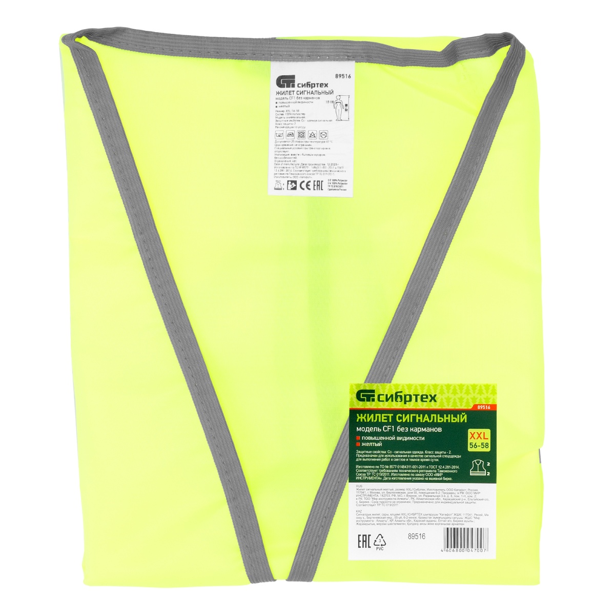Купить Жилет сигнальный, желтый, размер XXL Сибртех V1794 по лучшей цене с доставкой - интернет магазин №1 в России