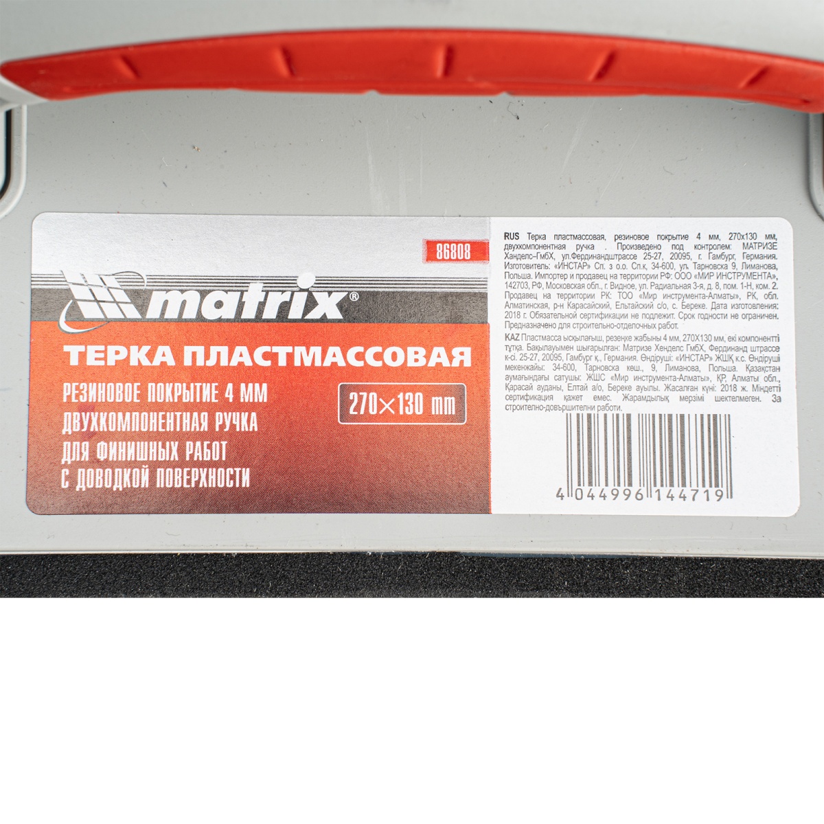 Купить Терка пластмассовая, резиновое покрытие 4 мм, 270 x 130 мм, двухкомпонентная ручка Matrix V7096 по лучшей цене с доставкой - интернет магазин №1 в России