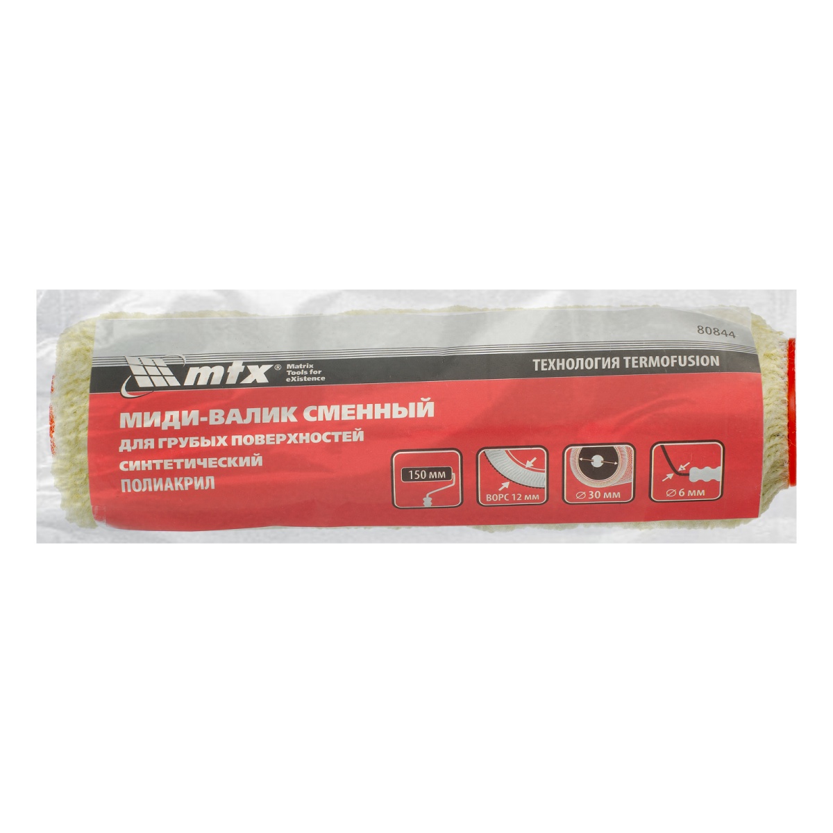 Купить Миди-валик сменный для грубых поверхностей синтетический, 150 мм, ворс 12 мм, D 30 мм, D ручки 6 мм, полиакрил MTX V3896 по лучшей цене с доставкой - интернет магазин №1 в России