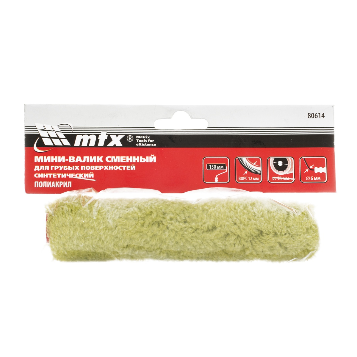 Купить Мини-валик сменный для грубых поверхностей синтетический, 150 мм, ворс 12 мм, D 16 мм, D ручки 6 мм, полиакрил MTX V3963 по лучшей цене с доставкой - интернет магазин №1 в России