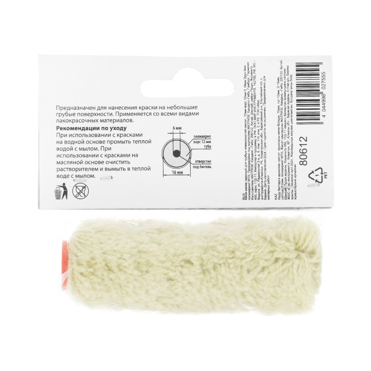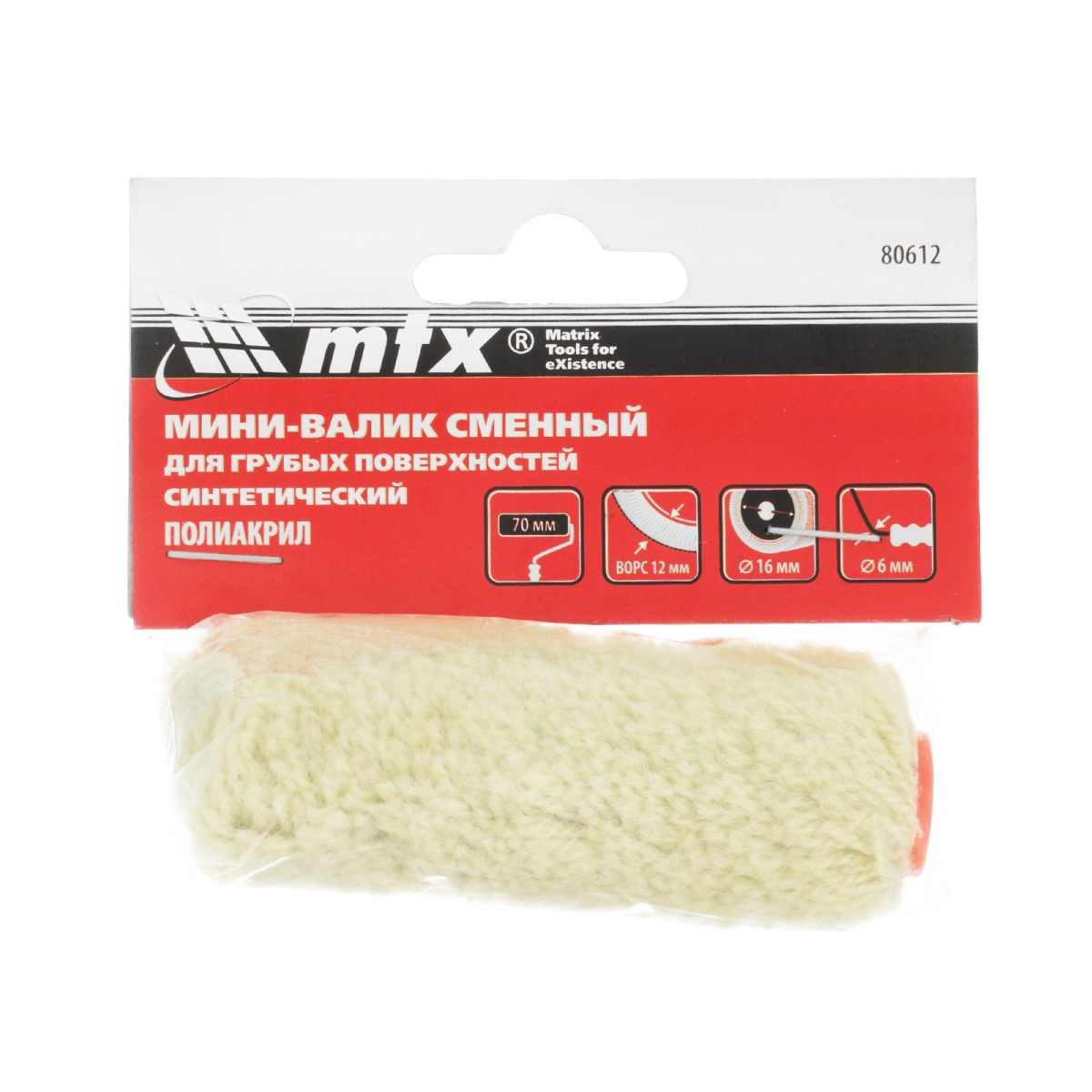 Купить Мини-валик сменный для грубых поверхностей синтетический, 60 мм, ворс 12 мм, D 16 мм, D ручки 6 мм, полиакрил MTX V3964 по лучшей цене с доставкой - интернет магазин №1 в России