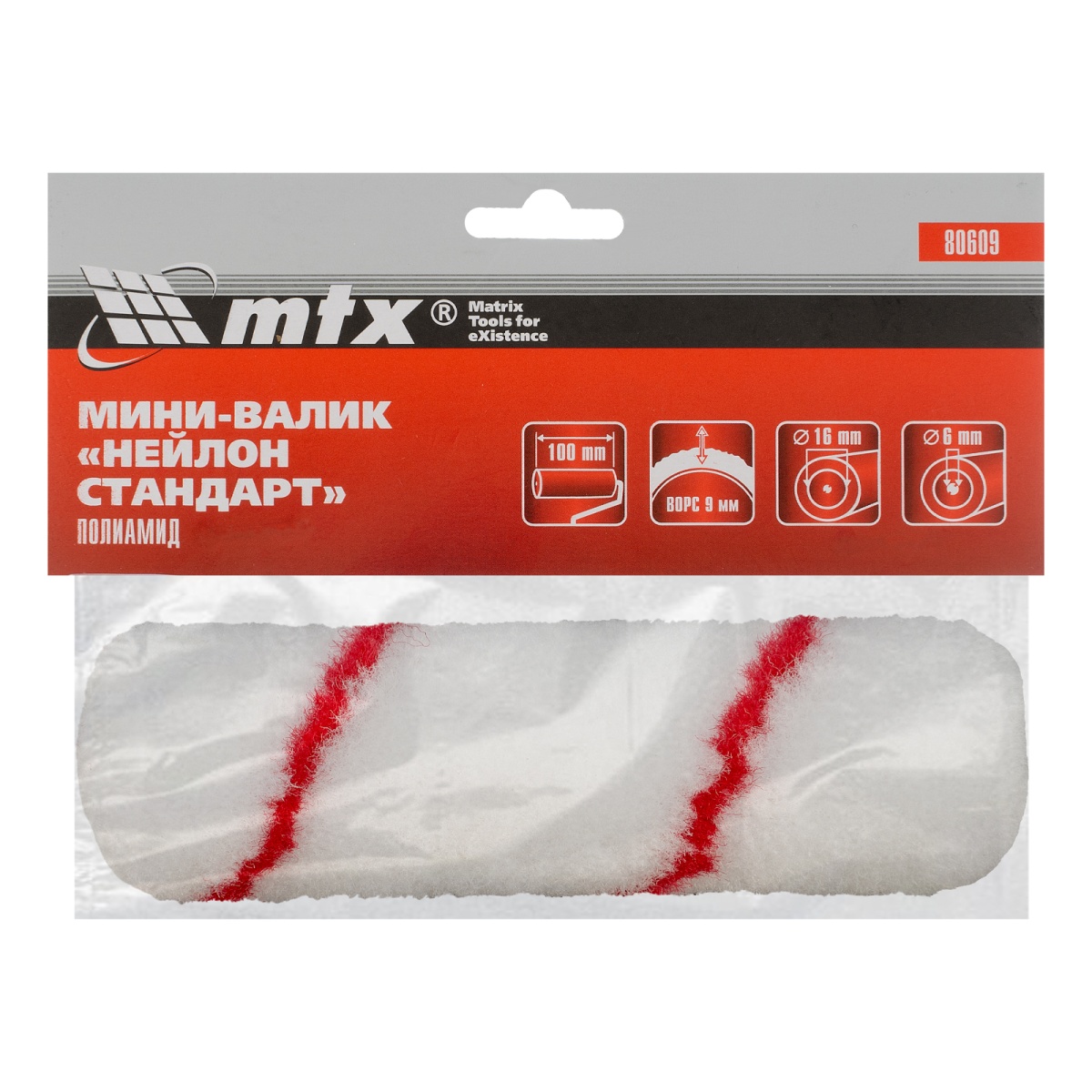 Мини-валик сменный, "Нейлон Стандарт", 110 мм, ворс 9 мм, D 16 мм, D ручки 6 мм, полиамид MTX