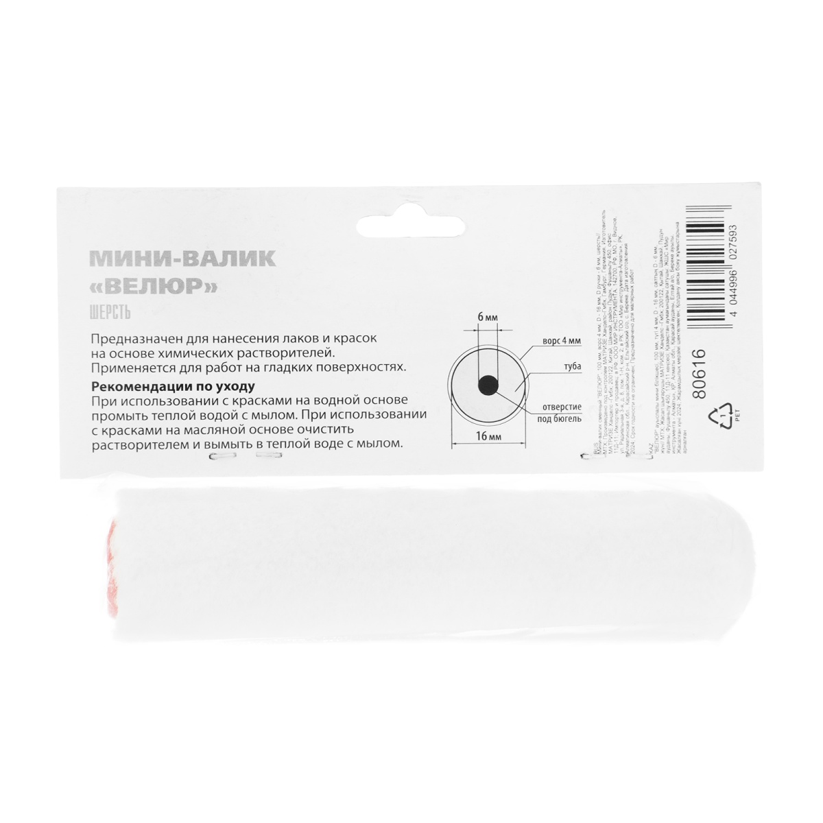 Мини-Валик сменный, "Велюр", 110 мм, ворс 4 мм, D 16 мм, D ручки 6 мм, шерсть MTX