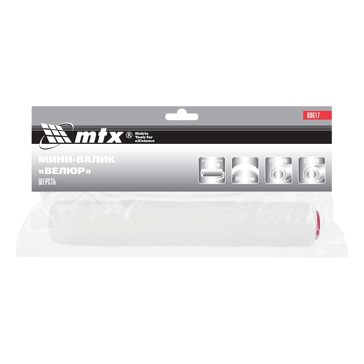 Купить Мини-Валик сменный, "Велюр", 150 мм, ворс 4 мм, D 16 мм, D ручки 6 мм, шерсть MTX V3968 по лучшей цене с доставкой - интернет магазин №1 в России