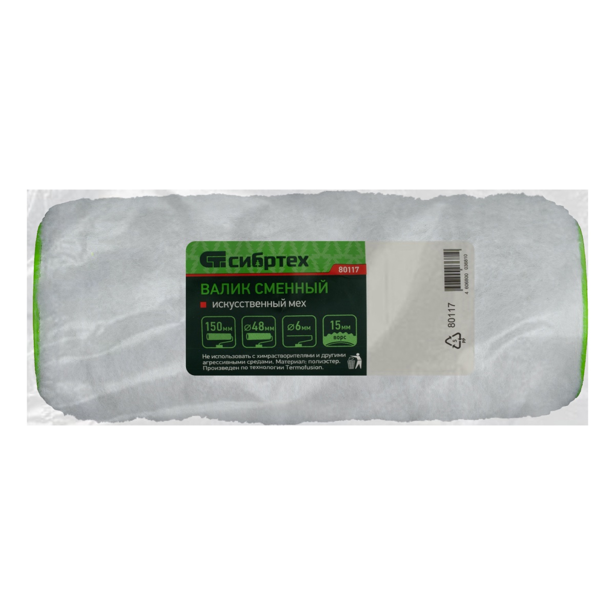 Купить Валик сменный "Искусственный мех" , 150 мм, ворс 15 мм, D 48 мм, D ручки 6 мм, полиэстер Сибртех V1133 по лучшей цене с доставкой - интернет магазин №1 в России