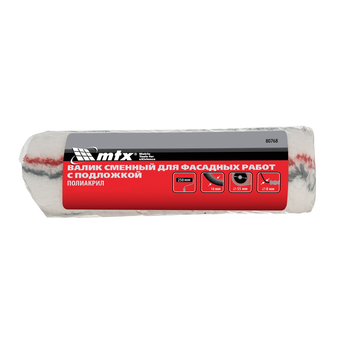 Валик сменный "Политекс", Фасадный, 250 мм, ворс 18 мм, D 55 мм, D ручки 8 мм, полиакрил MTX