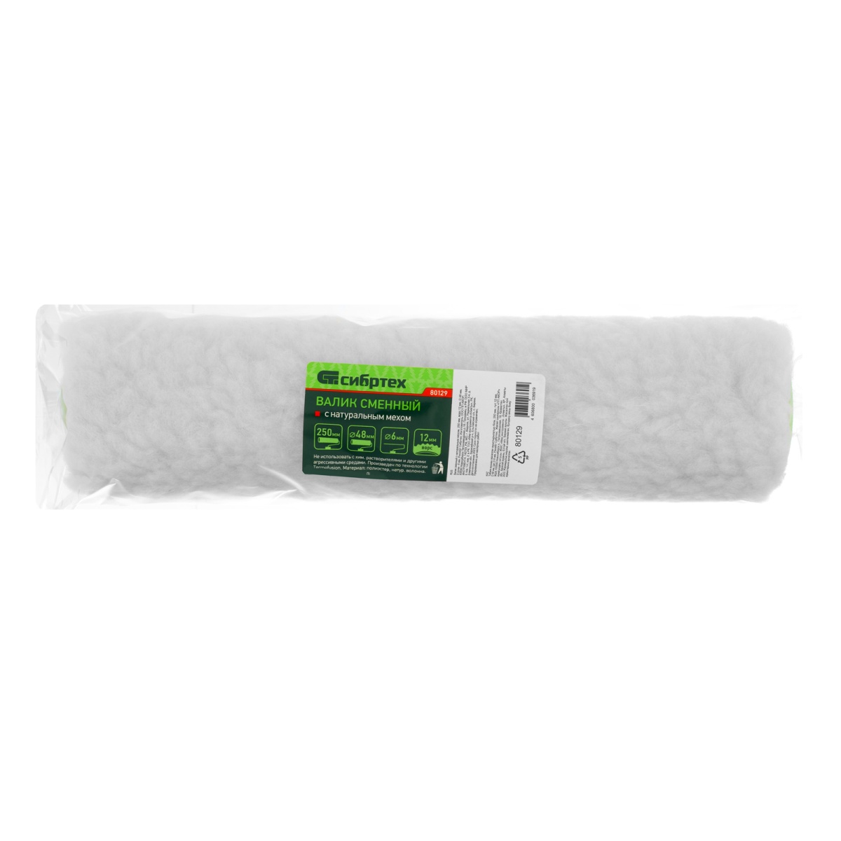 Купить Валик сменный с натуральным мехом, 250 мм, ворс 12 мм, D 48 мм, D ручки 6 мм, Сибртех V1165 по лучшей цене с доставкой - интернет магазин №1 в России