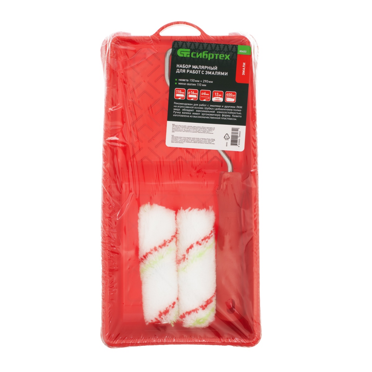 Купить Малярный набор для работ с эмалями: кювета 150 мм х 290 мм и мини-валик 110 мм Сибртех V3815 по лучшей цене с доставкой - интернет магазин №1 в России