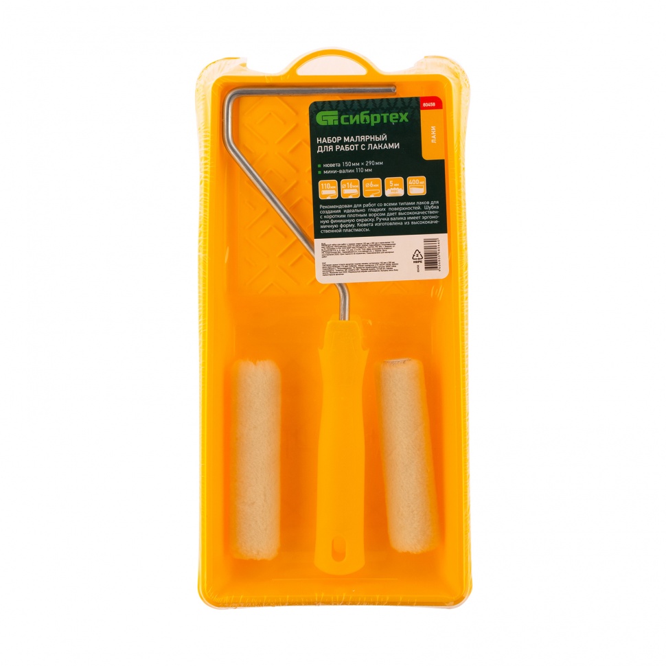 Купить Малярный набор для работ с лаками: кювета 150 мм х 290 мм и мини-валик 110 мм Сибртех V3814 по лучшей цене с доставкой - интернет магазин №1 в России