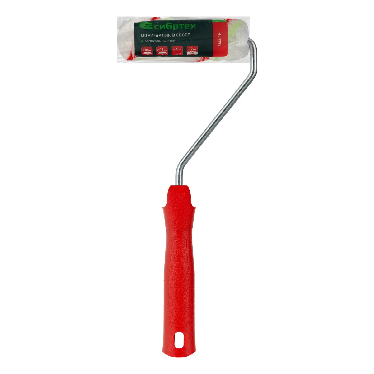 Купить Мини-валик в сборе "Эмали", 110 мм, ворс 12 мм, D 16 мм, D ручки 6 мм, полиамид, полиакрил Сибртех V3949 по лучшей цене с доставкой - интернет магазин №1 в России