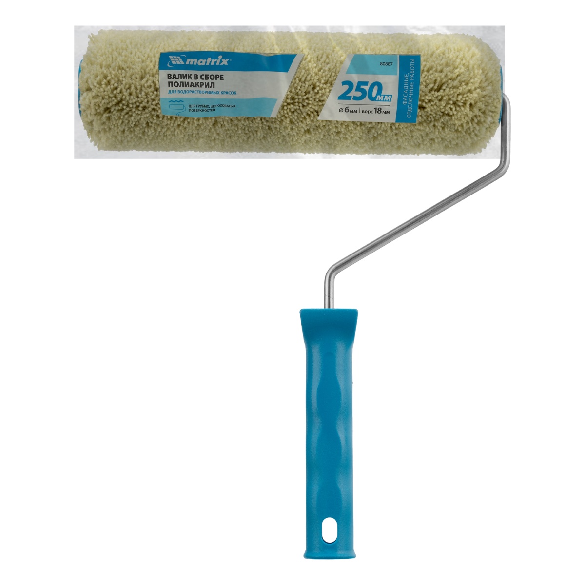 Купить Валик для фасадных работ синтетический, 250 мм, ворс 18 мм, D 36 мм, D ручки 6 мм, полиакрил Matrix V1104 по лучшей цене с доставкой - интернет магазин №1 в России