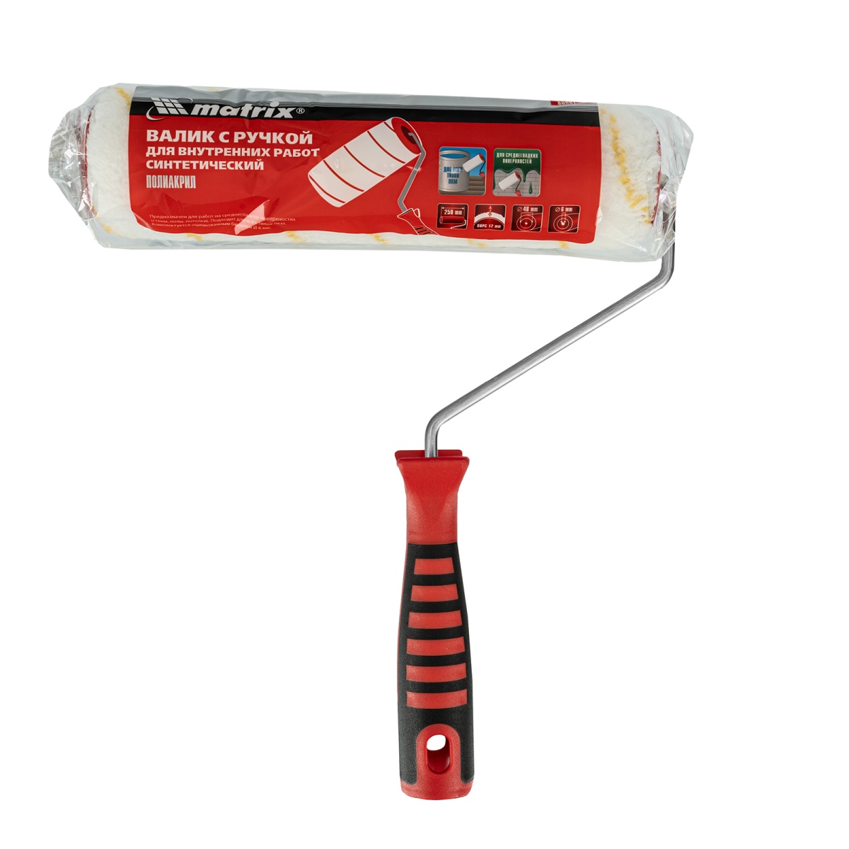 Валик для внутренних работ синтетический, с двухком.ручкой, 250 мм, ворс 12 мм, D 48 мм, D ручки 6 мм, полиакрил Matrix