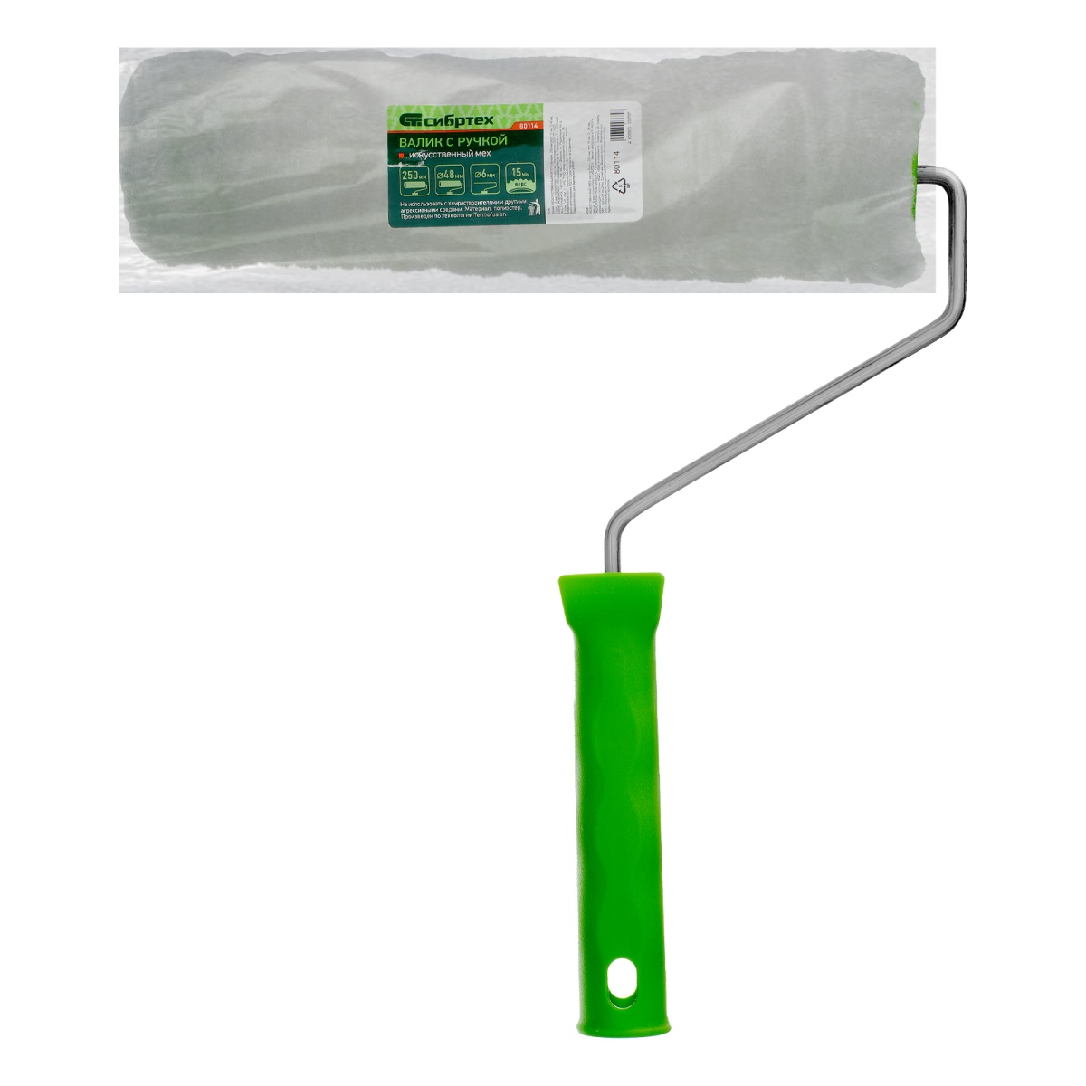 Купить Валик "Искусственный мех" с ручкой, 250 мм,ворс 15 мм, D 48 мм, D ручки 6 мм, полиэстер Сибртех V1039 по лучшей цене с доставкой - интернет магазин №1 в России