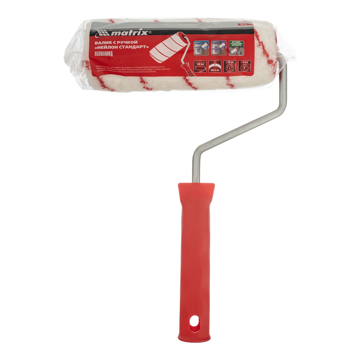 Купить Валик "Нейлон Стандарт", 180 мм, ворс 9 мм, D 48 мм, D ручки 8 мм, полиамид Matrix V1061 по лучшей цене с доставкой - интернет магазин №1 в России