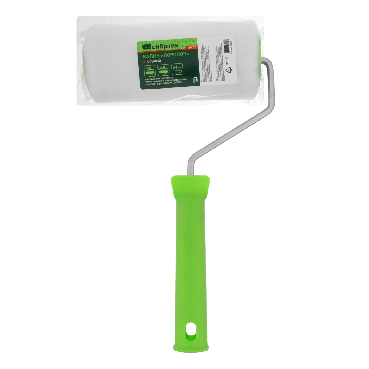 Купить Валик "Поролон" с ручкой, 150 мм, D 48 мм, D ручки 6 мм Сибртех V1069 по лучшей цене с доставкой - интернет магазин №1 в России