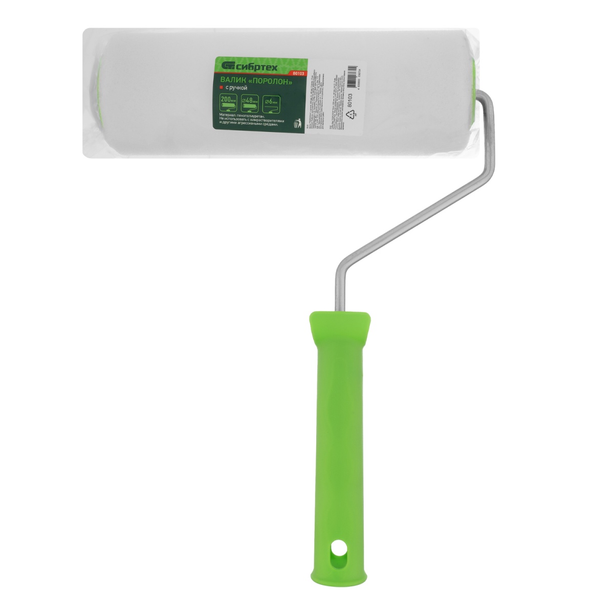 Купить Валик "Поролон" с ручкой, 200 мм, D 48 мм, D ручки 6 мм Сибртех V1070 по лучшей цене с доставкой - интернет магазин №1 в России
