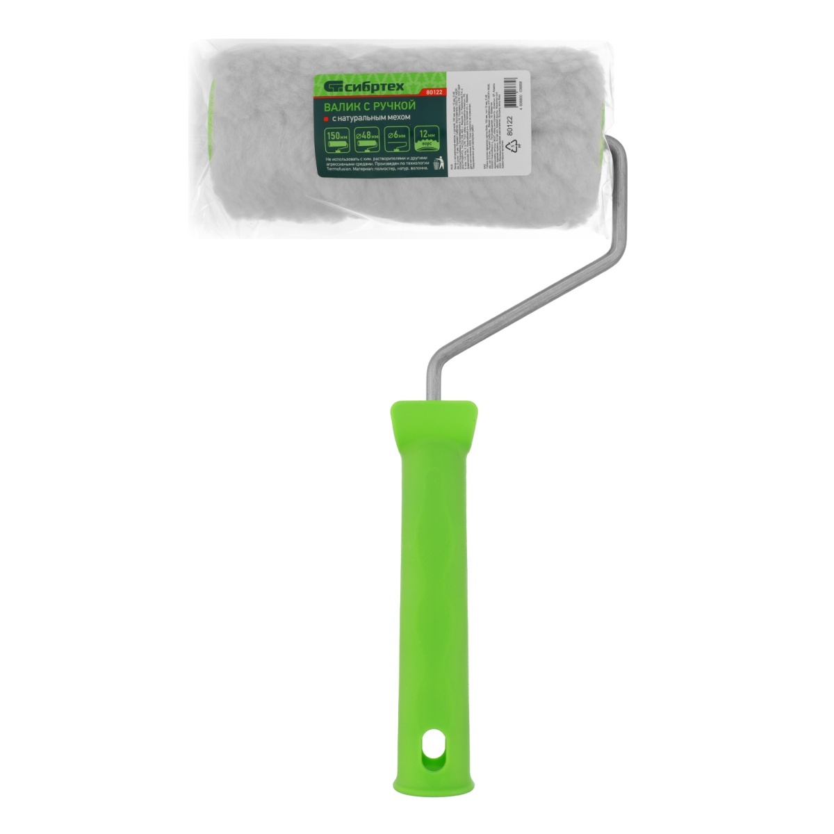 Купить Валик с натуральным мехом, с ручкой, 150 мм, ворс 12 мм, D 48 мм, D ручки 6 мм, Сибртех V1125 по лучшей цене с доставкой - интернет магазин №1 в России