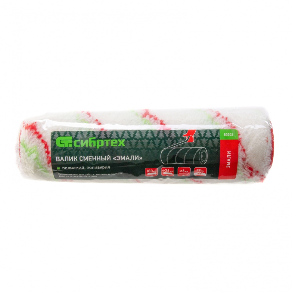 Купить Валик сменный "Эмали" , 180 мм, ворс 12 мм, D - 36 мм, D ручки - 6 мм, полиамид, полиакрил Сибртех V1149 по лучшей цене с доставкой - интернет магазин №1 в России
