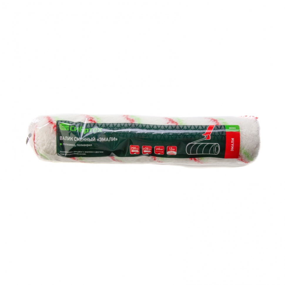 Купить Валик сменный "Эмали" , 250 мм, ворс 12 мм, D - 36 мм, D ручки - 6 мм, полиамид, полиакрил Сибртех V1150 по лучшей цене с доставкой - интернет магазин №1 в России