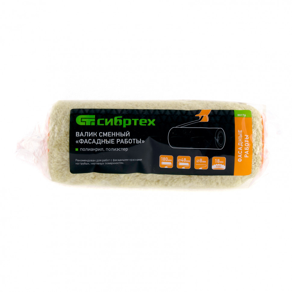 Купить Валик сменный "Фасадные работы", 180 мм, ворс 18 мм, D 48 мм, D ручки 8 мм, полиакрил, полиэстер Сибртех V1145 по лучшей цене с доставкой - интернет магазин №1 в России