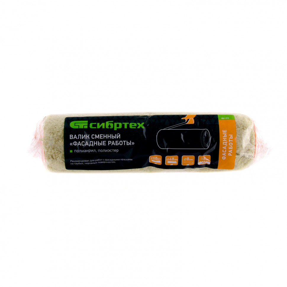 Купить Валик сменный "Фасадные работы", 250 мм, ворс 18 мм, D 48 мм, D ручки 8 мм, полиакрил, полиэстер Сибртех V1147 по лучшей цене с доставкой - интернет магазин №1 в России