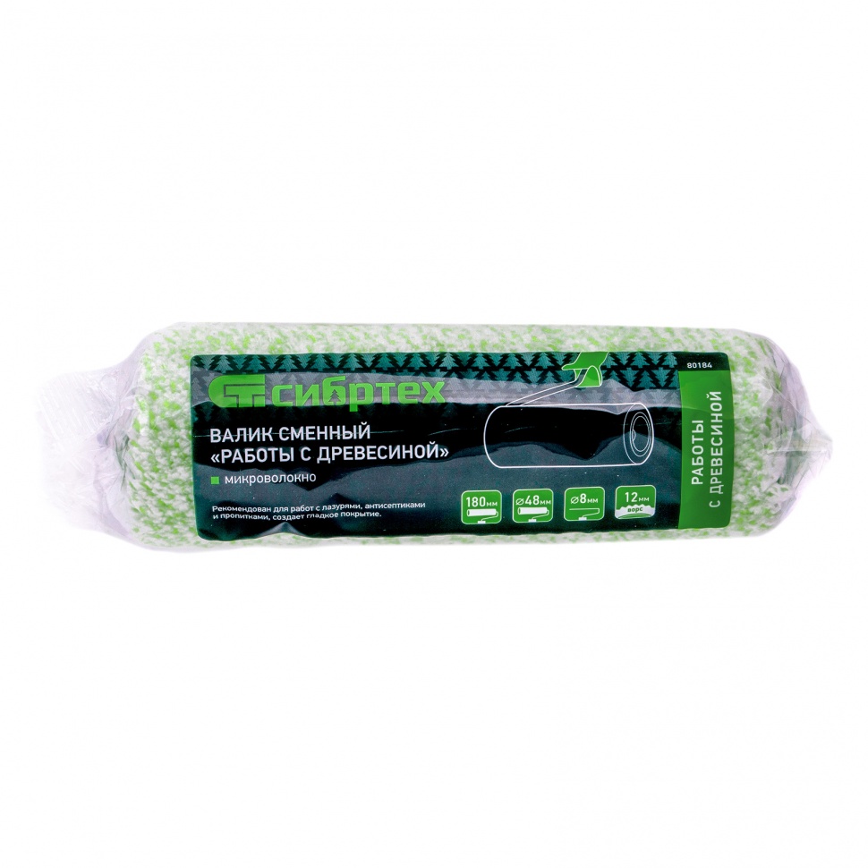 Купить Валик сменный "Работы с древесиной", 180 мм, ворс 12 мм, D 48 мм, D ручки 8 мм, микроволокно Сибртех V1142 по лучшей цене с доставкой - интернет магазин №1 в России