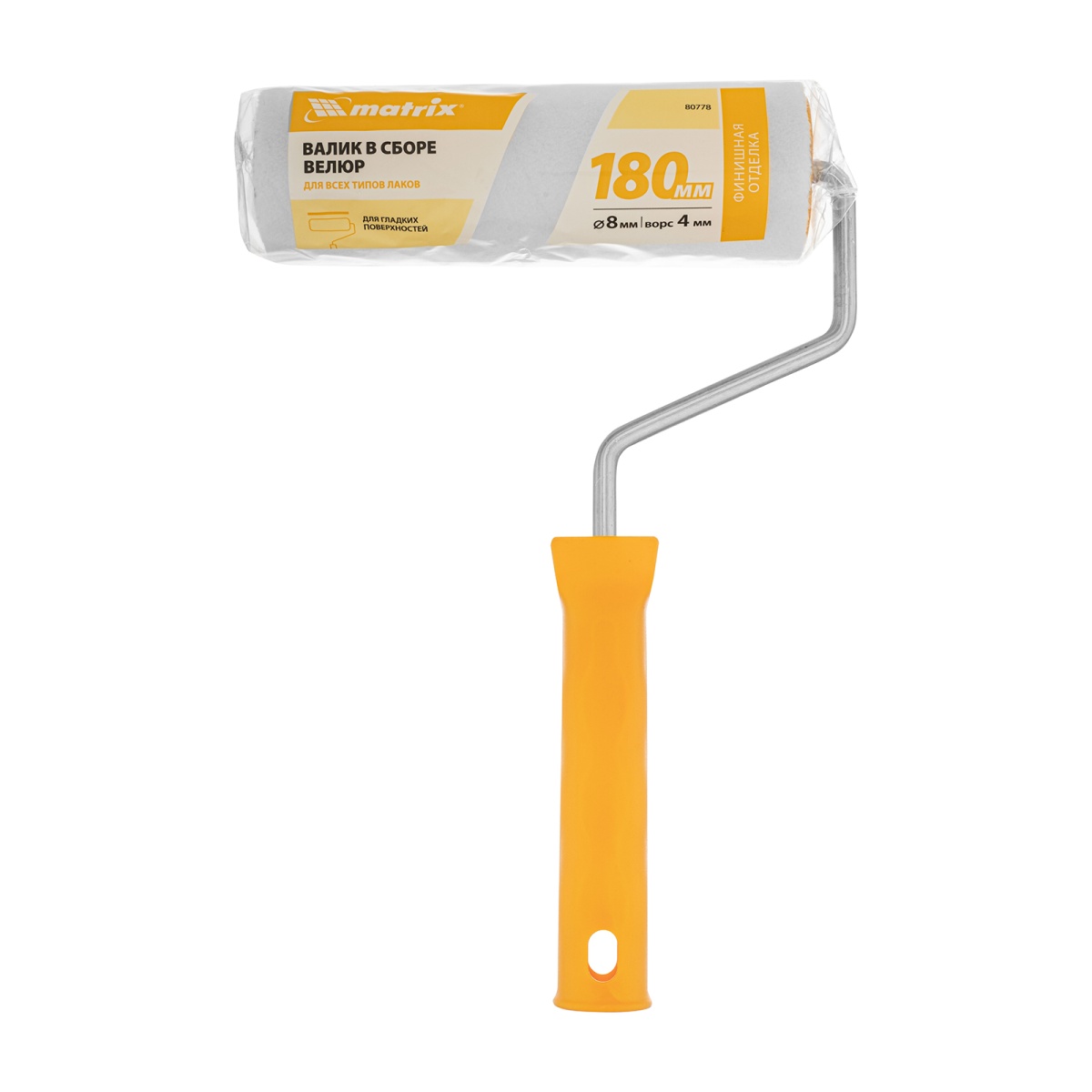Валик "Велюр", 180 мм, ворс 4 мм, D 48 мм, D ручки 8 мм, шерсть Matrix