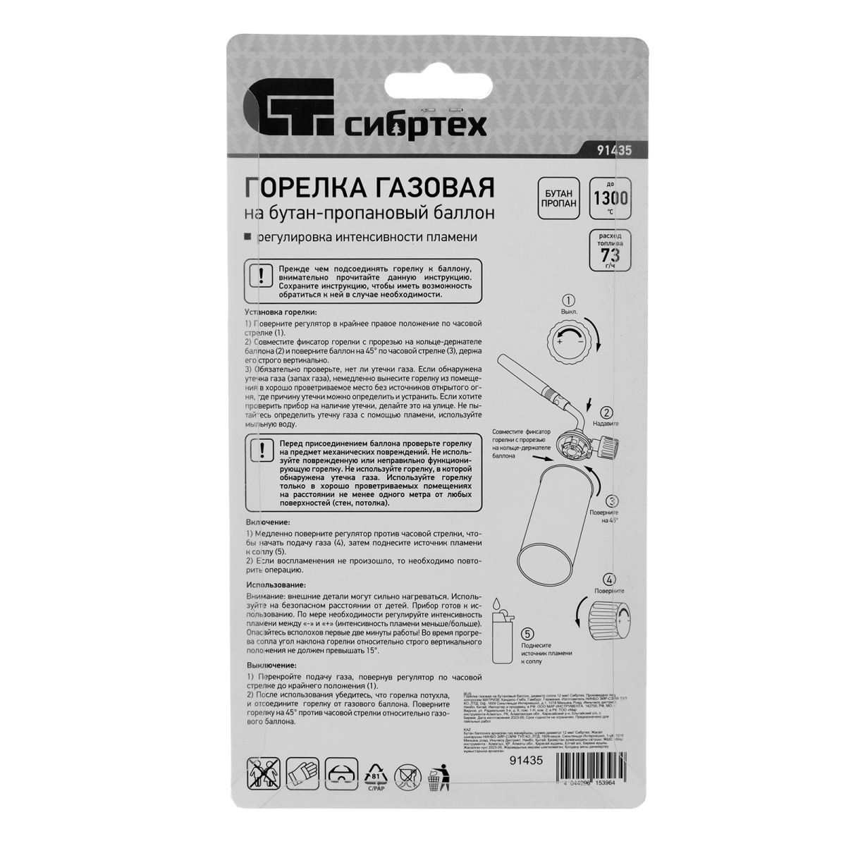 Купить Горелка газовая на бутановый баллон, диаметр сопла 12 мм Сибртех V1480 по лучшей цене с доставкой - интернет магазин №1 в России