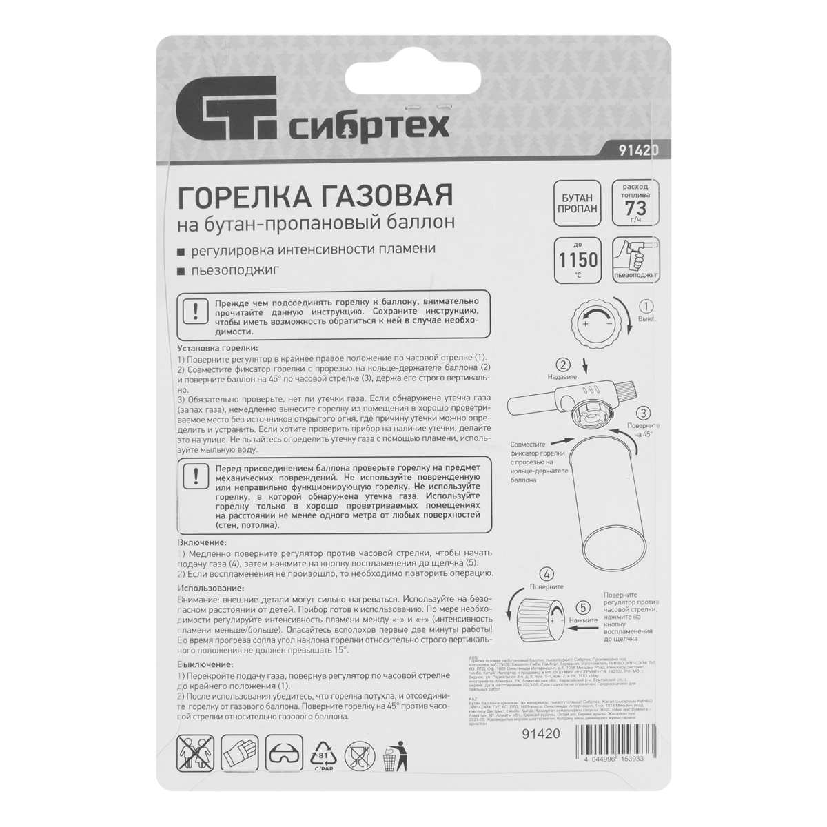 Наличие клапана для сброса давления Горелка газовая на бутановый баллон, регулятор уровня пламени, пьезоподжиг Сибртех