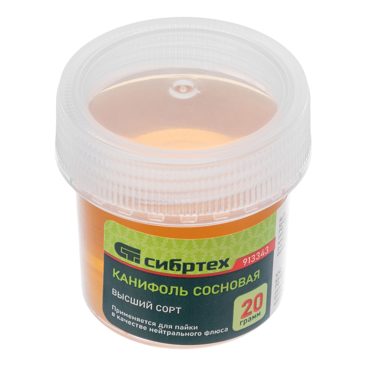 Купить Канифоль сосновая, банка 20 г, ГОСТ 19113-84 Сибртех V1961 по лучшей цене с доставкой - интернет магазин №1 в России