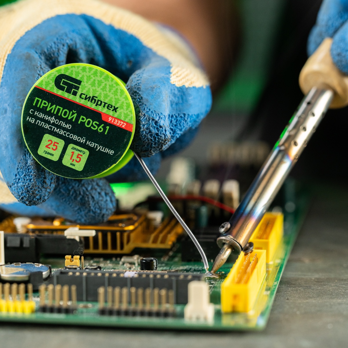 Купить Припой с канифолью, D 1.5 мм, 25 г, POS61, на пластмассовой катушке Сибртех V5854 по лучшей цене с доставкой - интернет магазин №1 в России
