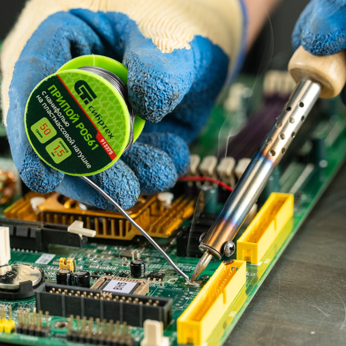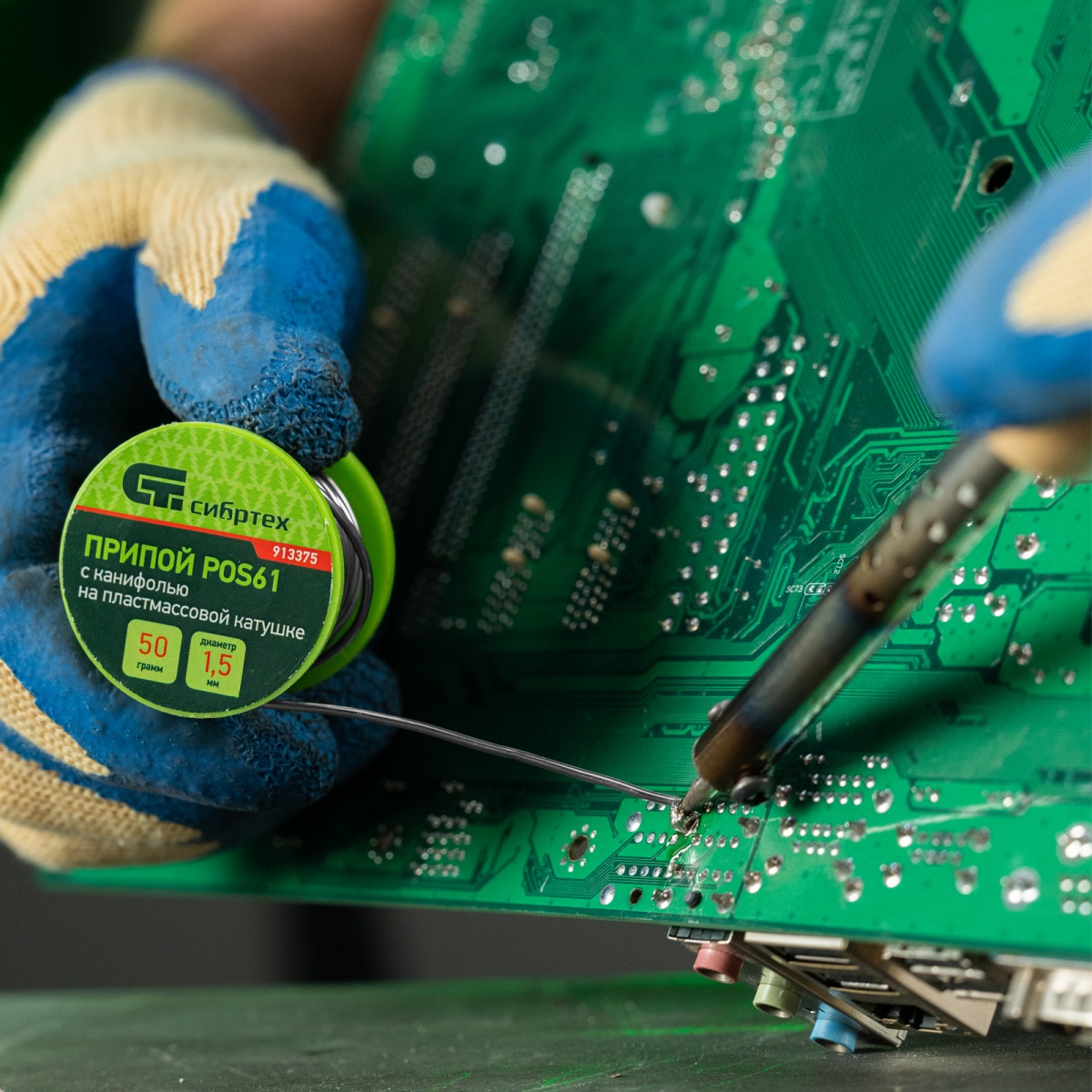 Припой с канифолью, D 1.5 мм, 50 г, POS61, на пластмассовой катушке Сибртех