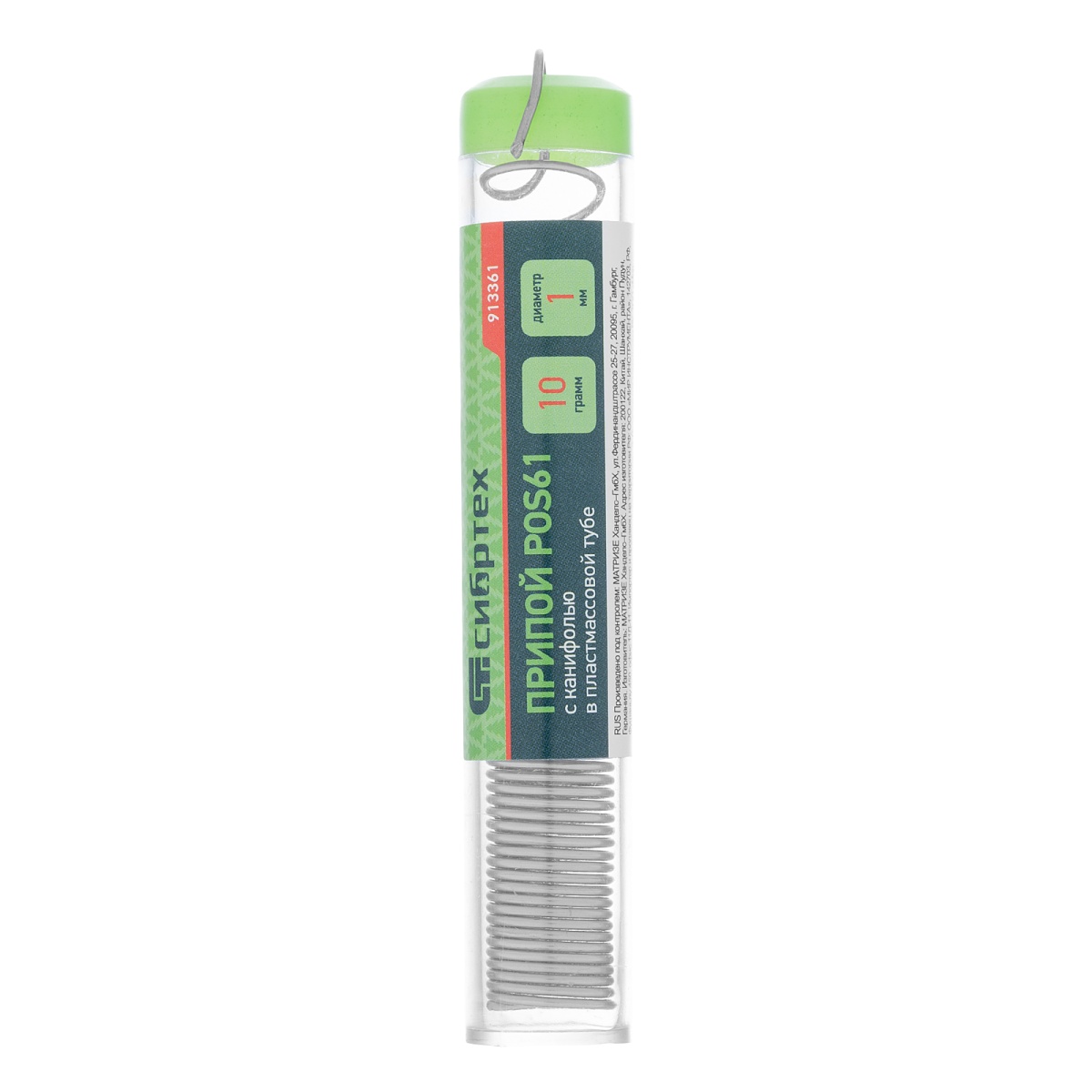 Купить Припой с канифолью, D 1 мм, 10 г, POS61, в пластмассовой тубе Сибртех V5848 по лучшей цене с доставкой - интернет магазин №1 в России