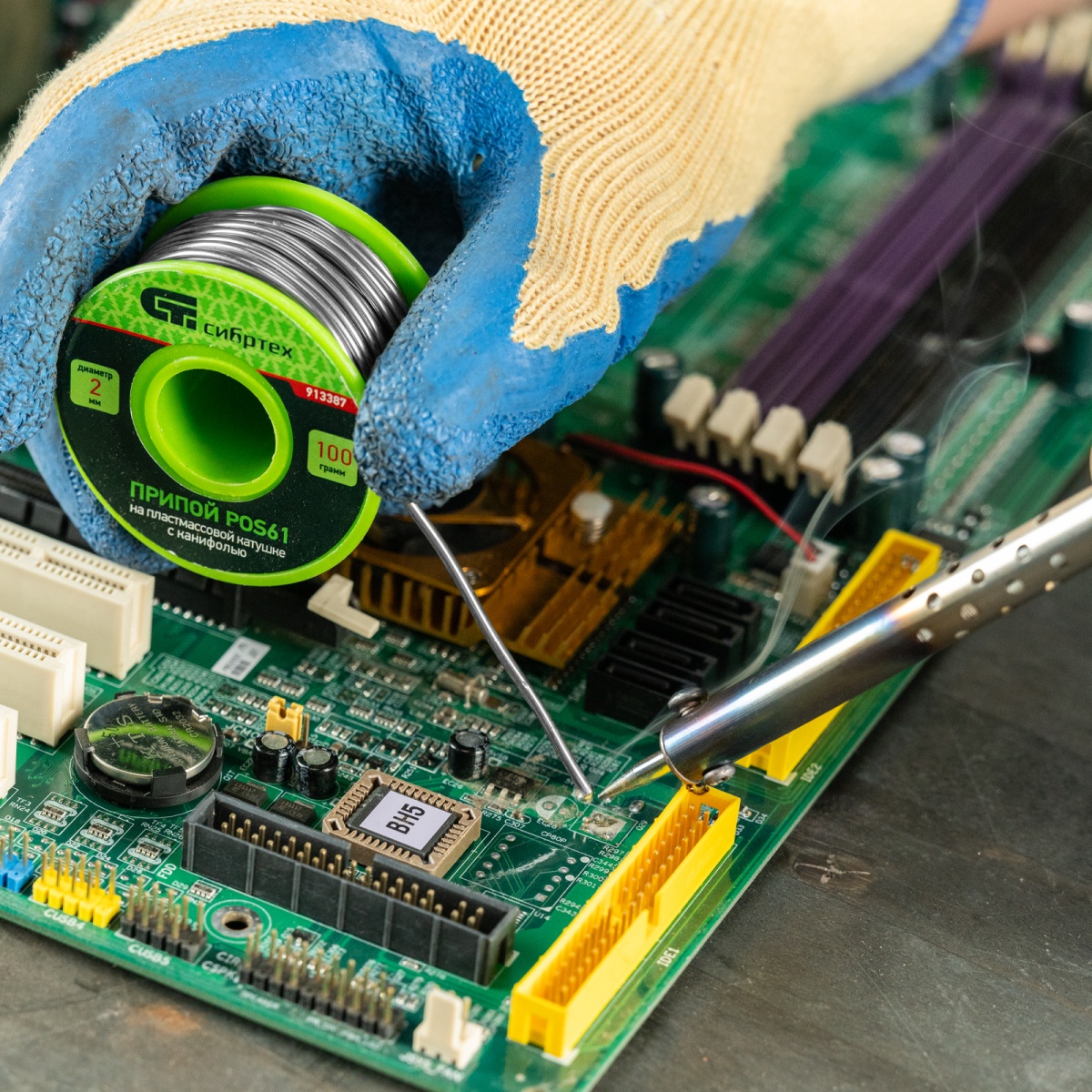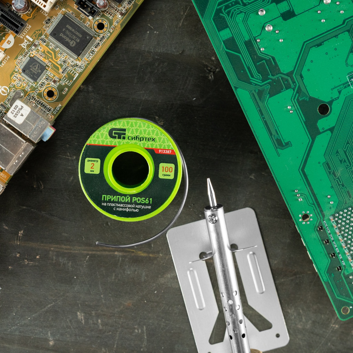 Купить Припой с канифолью, D 2 мм, 100 г, POS61, на пластмассовой катушке Сибртех V5856 по лучшей цене с доставкой - интернет магазин №1 в России