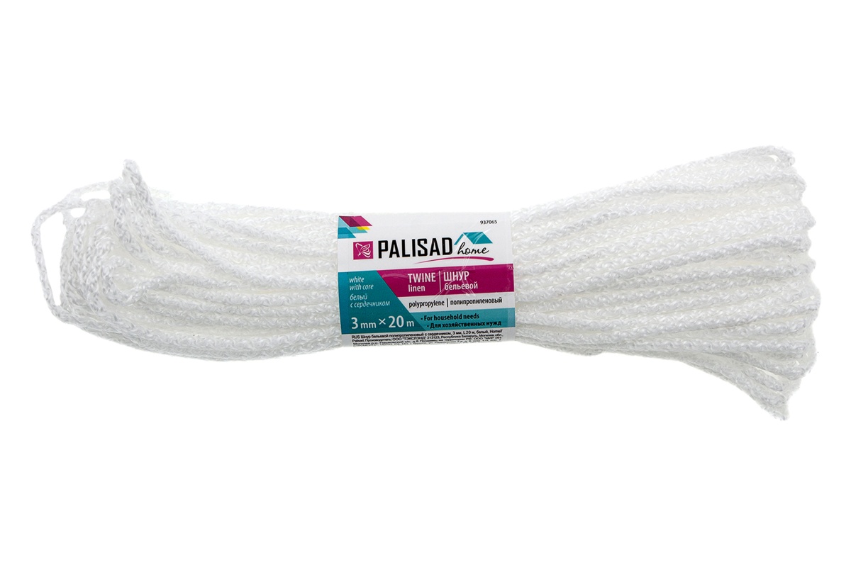 Купить Шнур бельевой полипропиленовый с сердечником, 3 мм, L 20 м, белый, Home Palisad V7830 по лучшей цене с доставкой - интернет магазин №1 в России