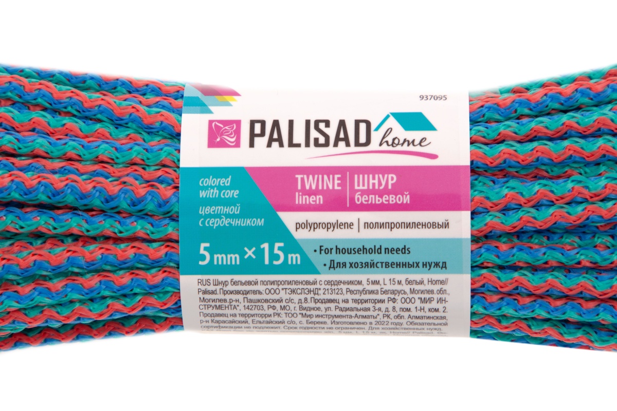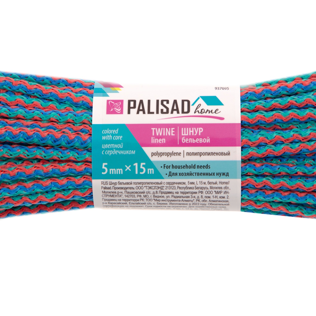 Купить Шнур бельевой полипропиленовый с сердечником, 5 мм, L 15 м, цветной, Home Palisad V7835 по лучшей цене с доставкой - интернет магазин №1 в России