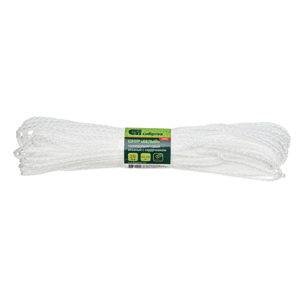 Купить Шнур вязаный полипропиленовый с серд. белый, 3 мм, L 20 м, Сибртех V7836 по лучшей цене с доставкой - интернет магазин №1 в России