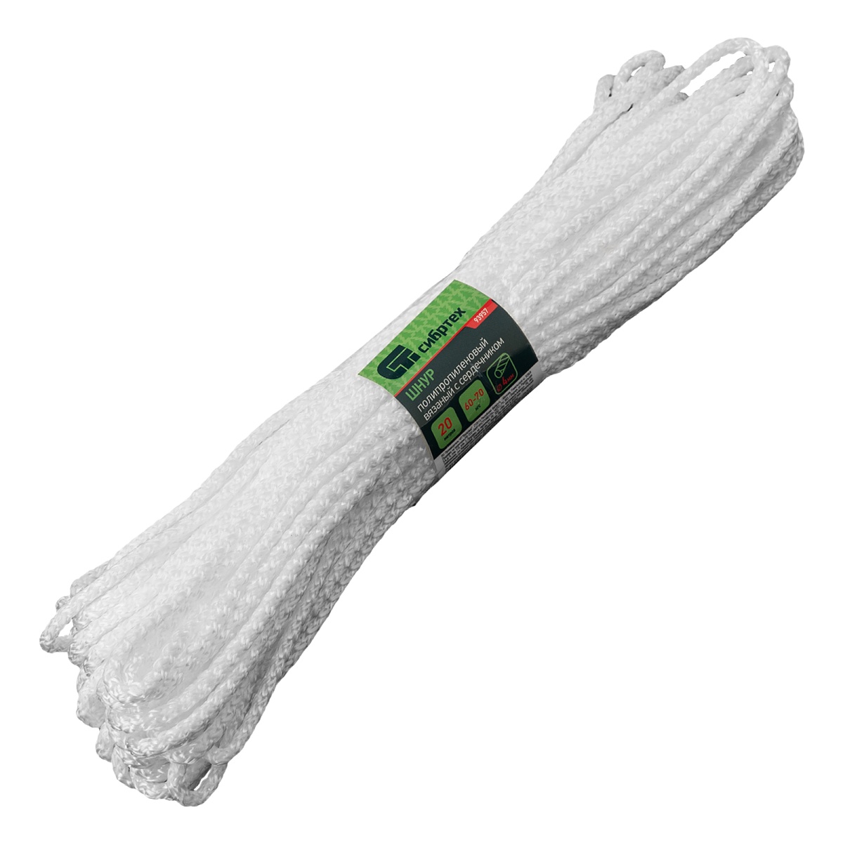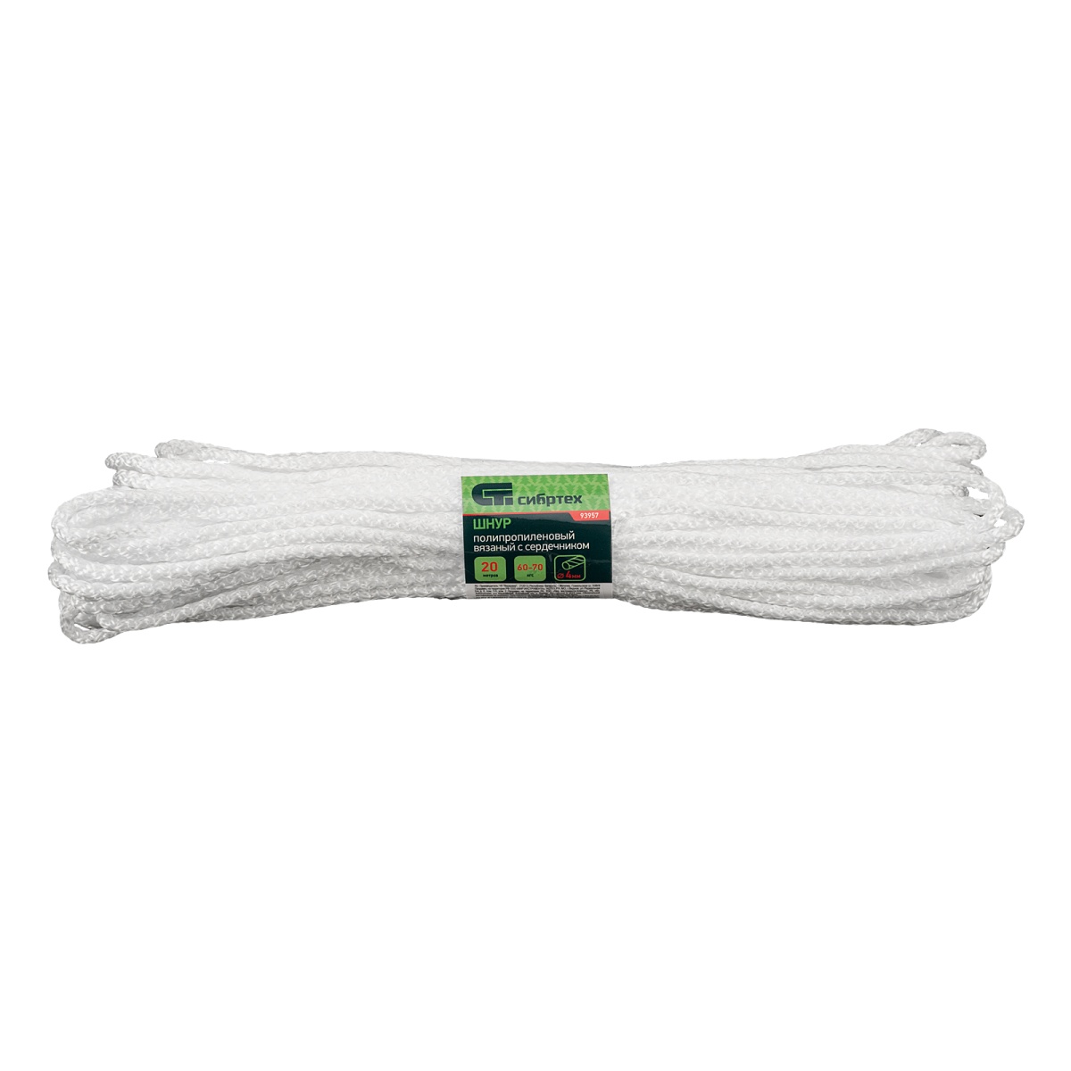 Купить Шнур вязаный полипропиленовый с серд. белый, 4 мм, L 20 м, Сибртех V7837 по лучшей цене с доставкой - интернет магазин №1 в России