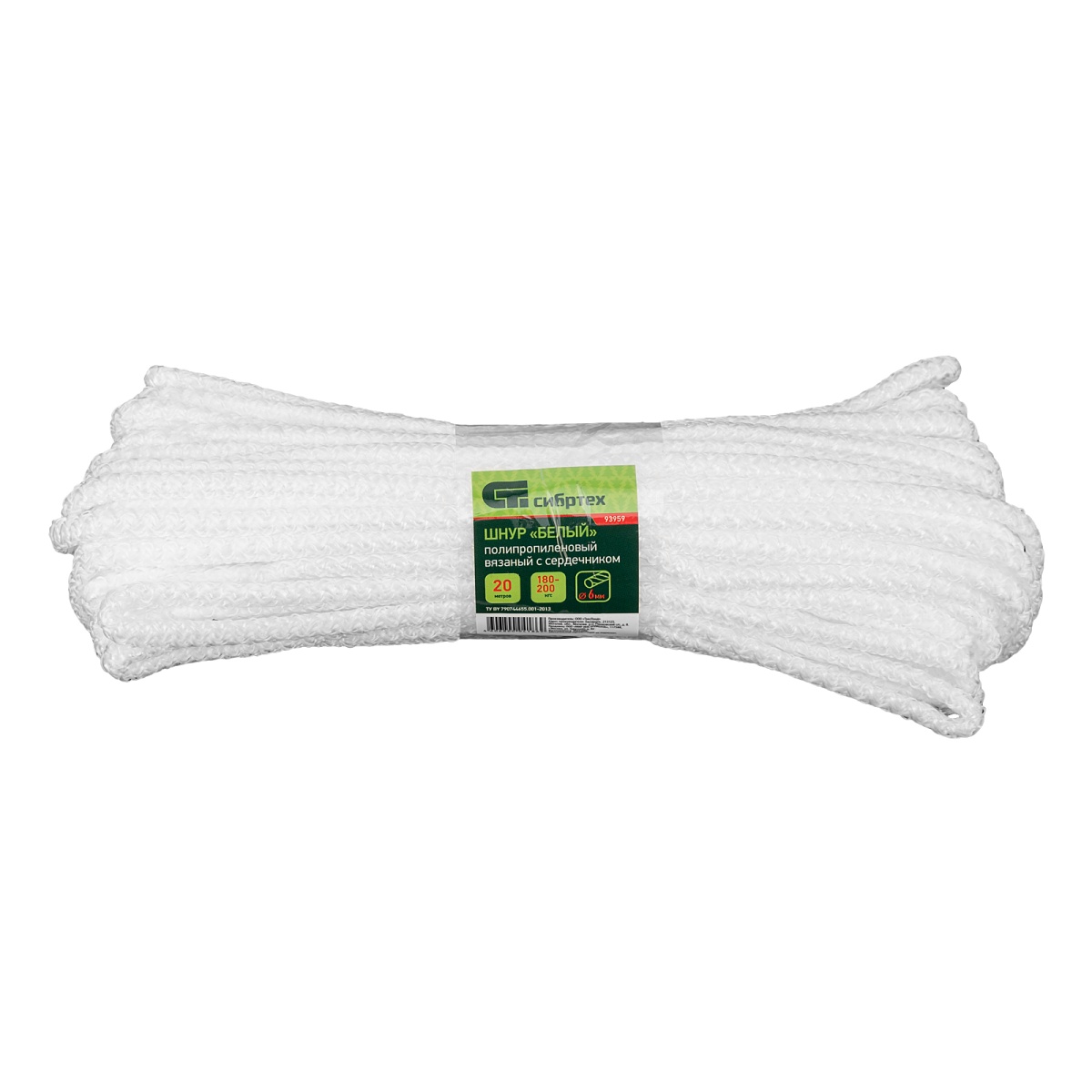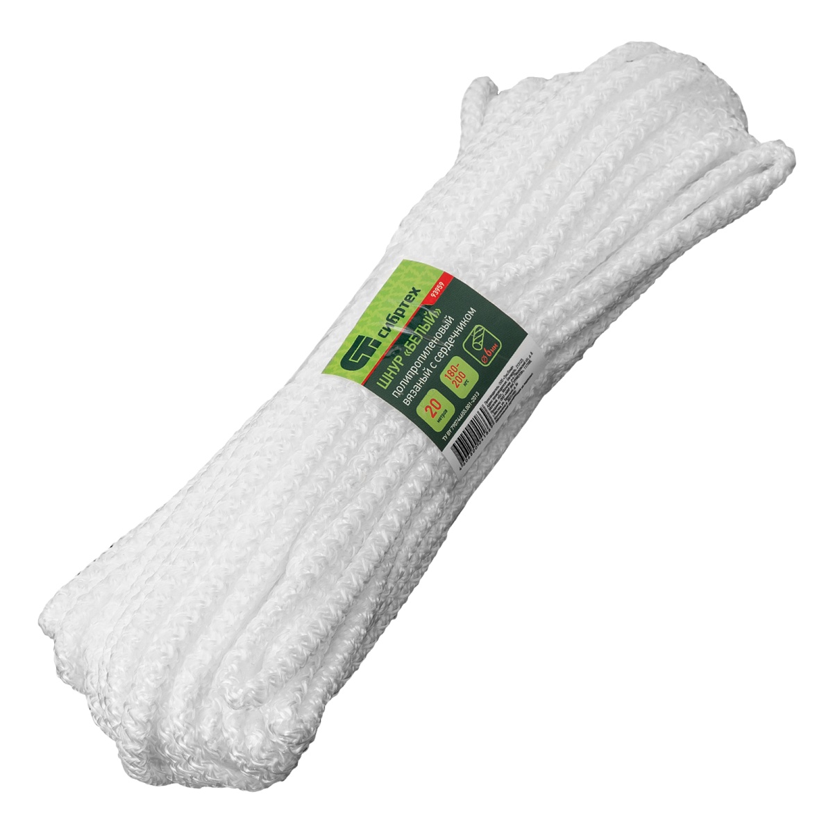 Купить Шнур вязаный полипропиленовый с серд. белый, 6 мм, L 20 м, Сибртех V7839 по лучшей цене с доставкой - интернет магазин №1 в России
