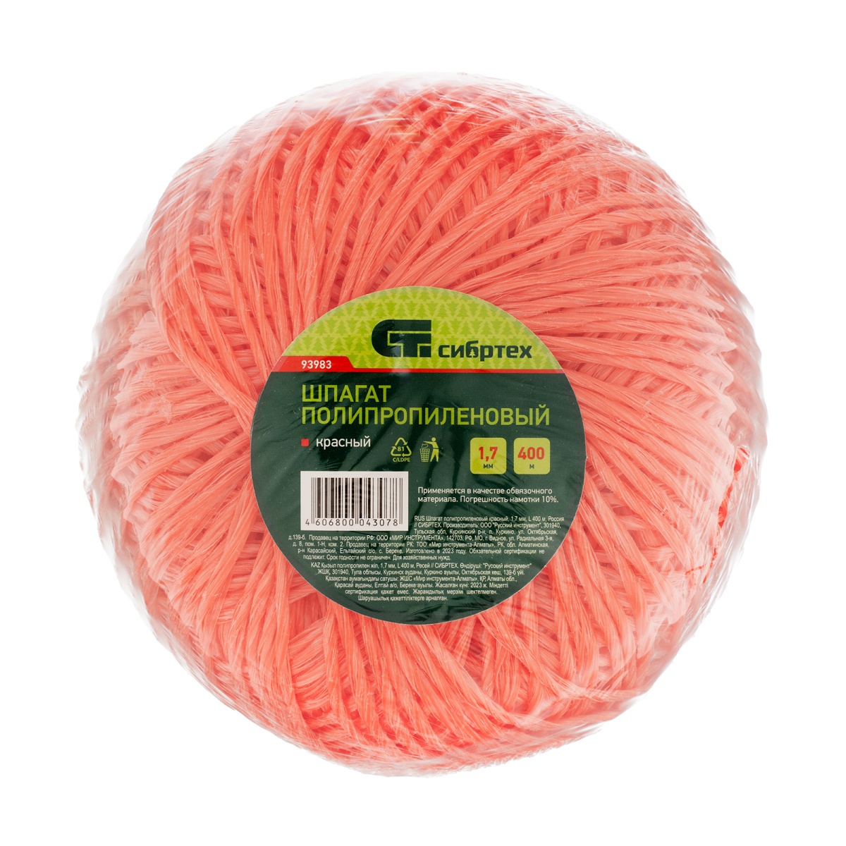 Купить Шпагат полипропиленовый красный, 1.7 мм, L 400 м, Сибртех V7874 по лучшей цене с доставкой - интернет магазин №1 в России