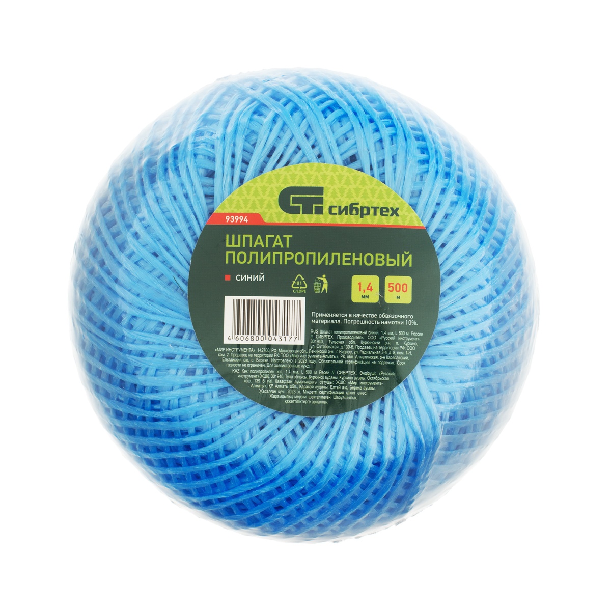 Купить Шпагат полипропиленовый синий, 1.4 мм, L 500 м, Сибртех V7876 по лучшей цене с доставкой - интернет магазин №1 в России