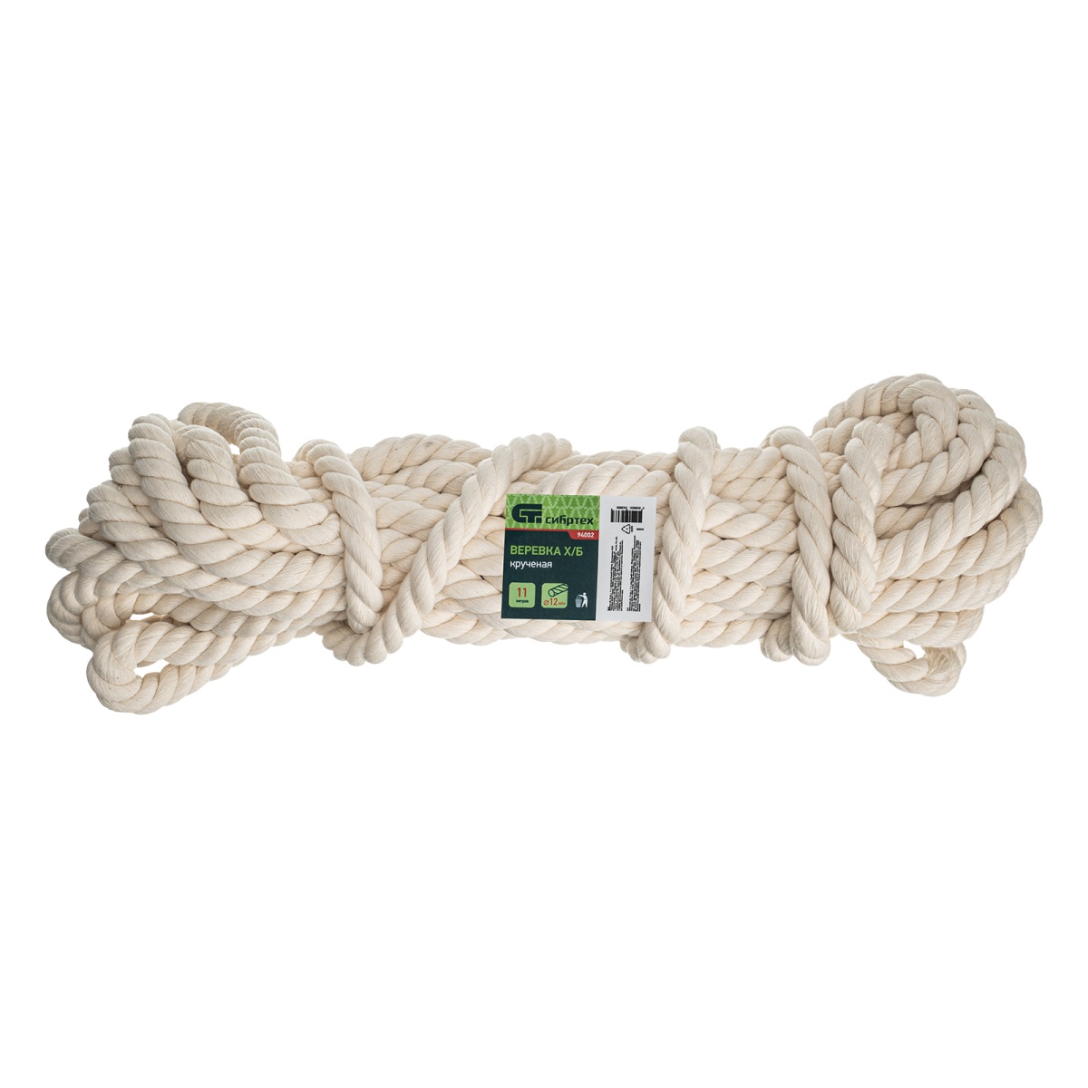 Купить Веревка х/б, D 12 мм, L 11 м, крученая, 299 кгс Сибртех V1207 по лучшей цене с доставкой - интернет магазин №1 в России