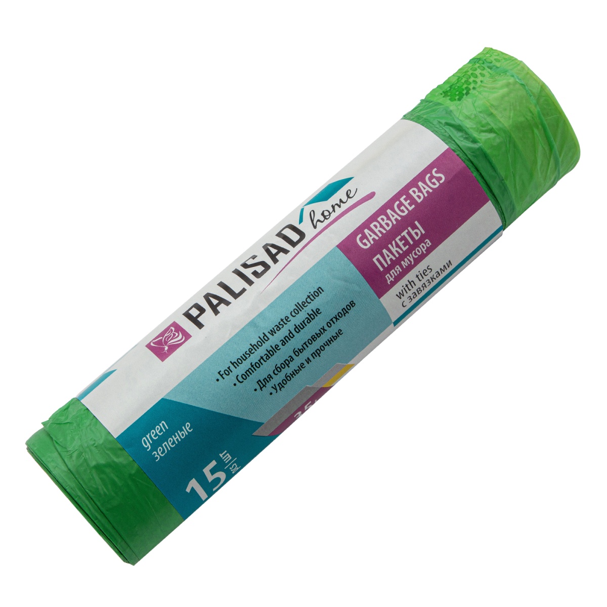 Купить Пакеты для мусора с завязками 35 л x 15 шт., зеленые, Home Palisad V5174 по лучшей цене с доставкой - интернет магазин №1 в России