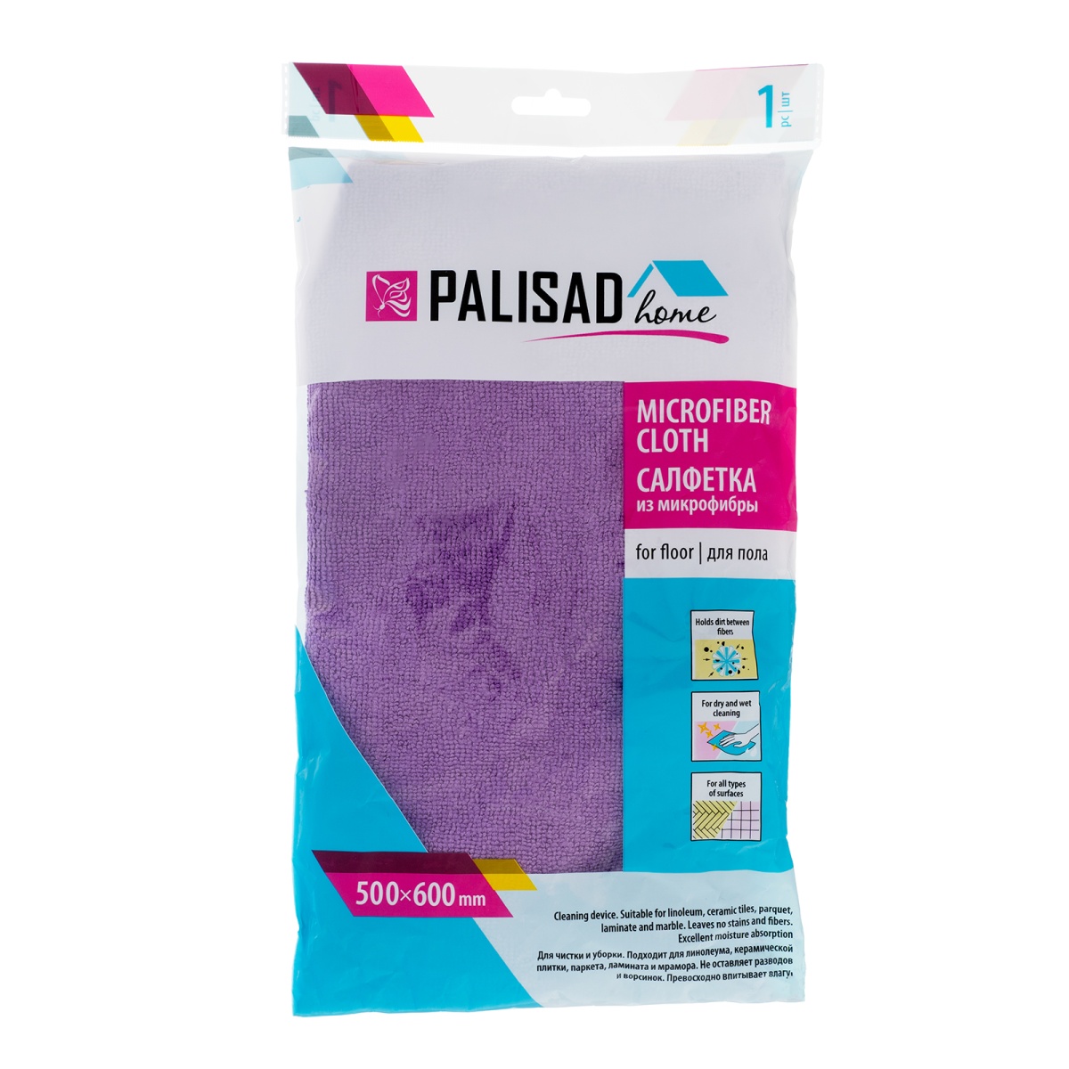 Купить Салфетка из микрофибры для пола, 500 x 600 мм, фиолетовая, Home Palisad V6191 по лучшей цене с доставкой - интернет магазин №1 в России