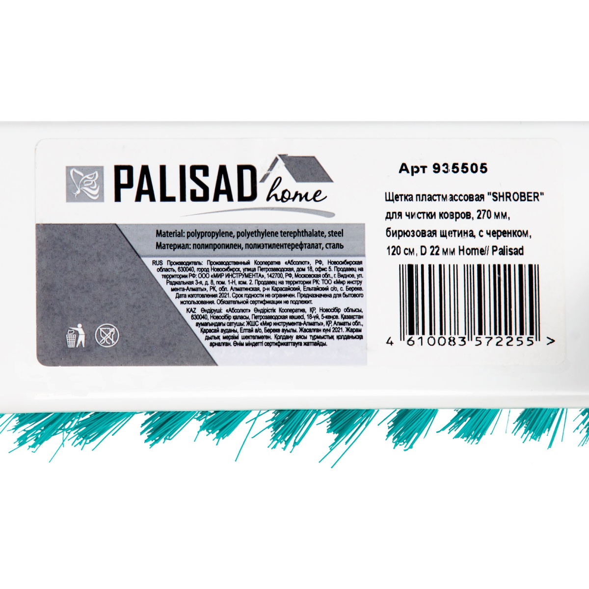 Купить Щетка пластмассовая для чистки ковров, 27 cм, c черенком, 120 см, бирюзовая щетина, Home Palisad V8166 по лучшей цене с доставкой - интернет магазин №1 в России