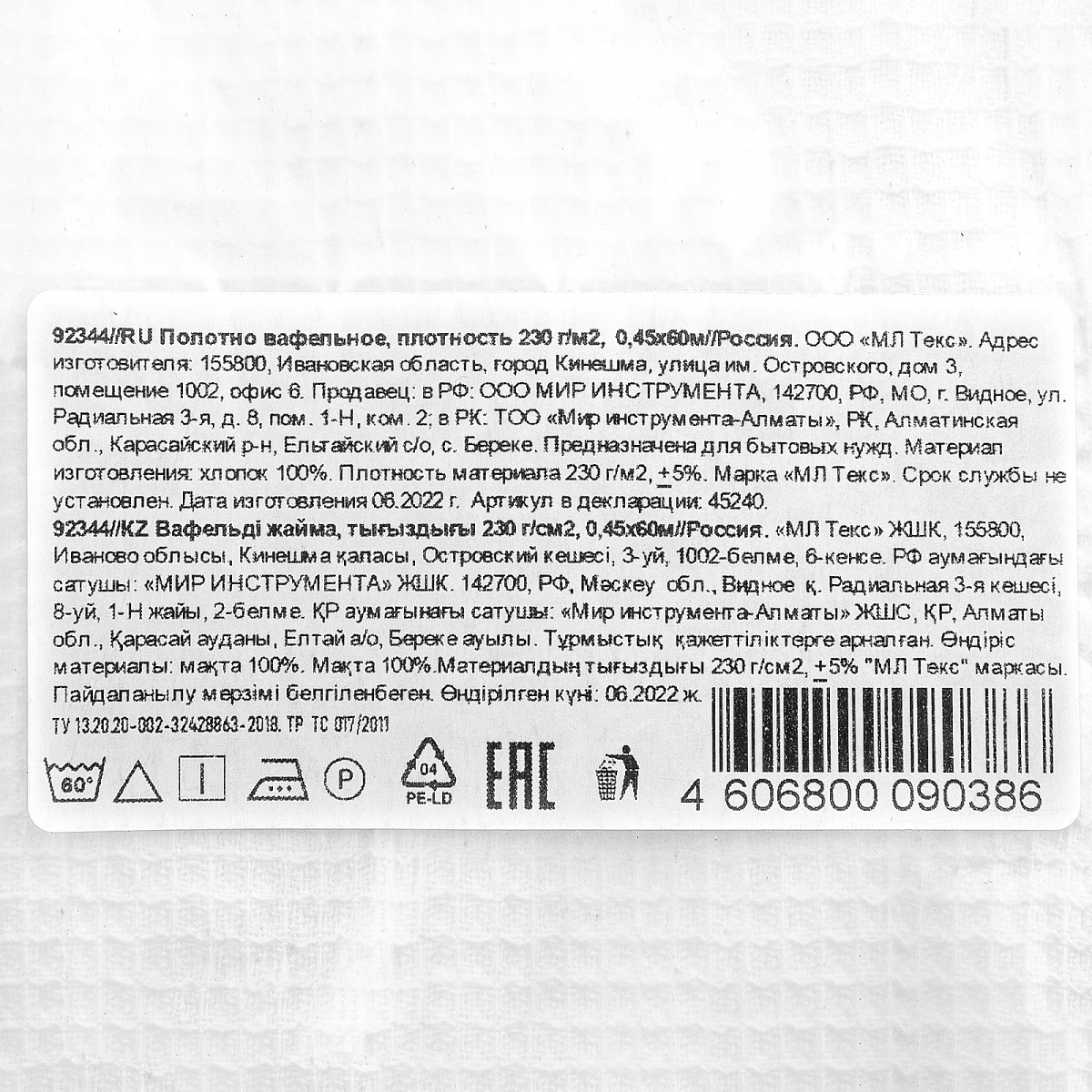 Полотно вафельное, 0,45х60 м