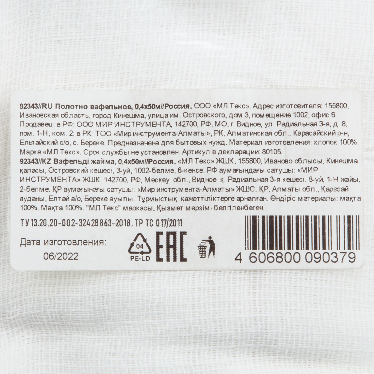 Полотно вафельное, 0,4х50 м